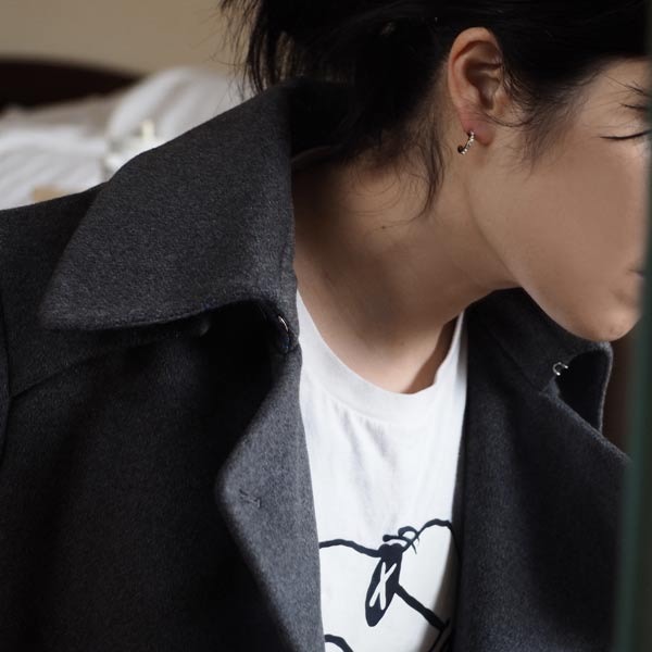 メルトンのコートをバサっと羽織って、耳元だけシンプルクラシック。